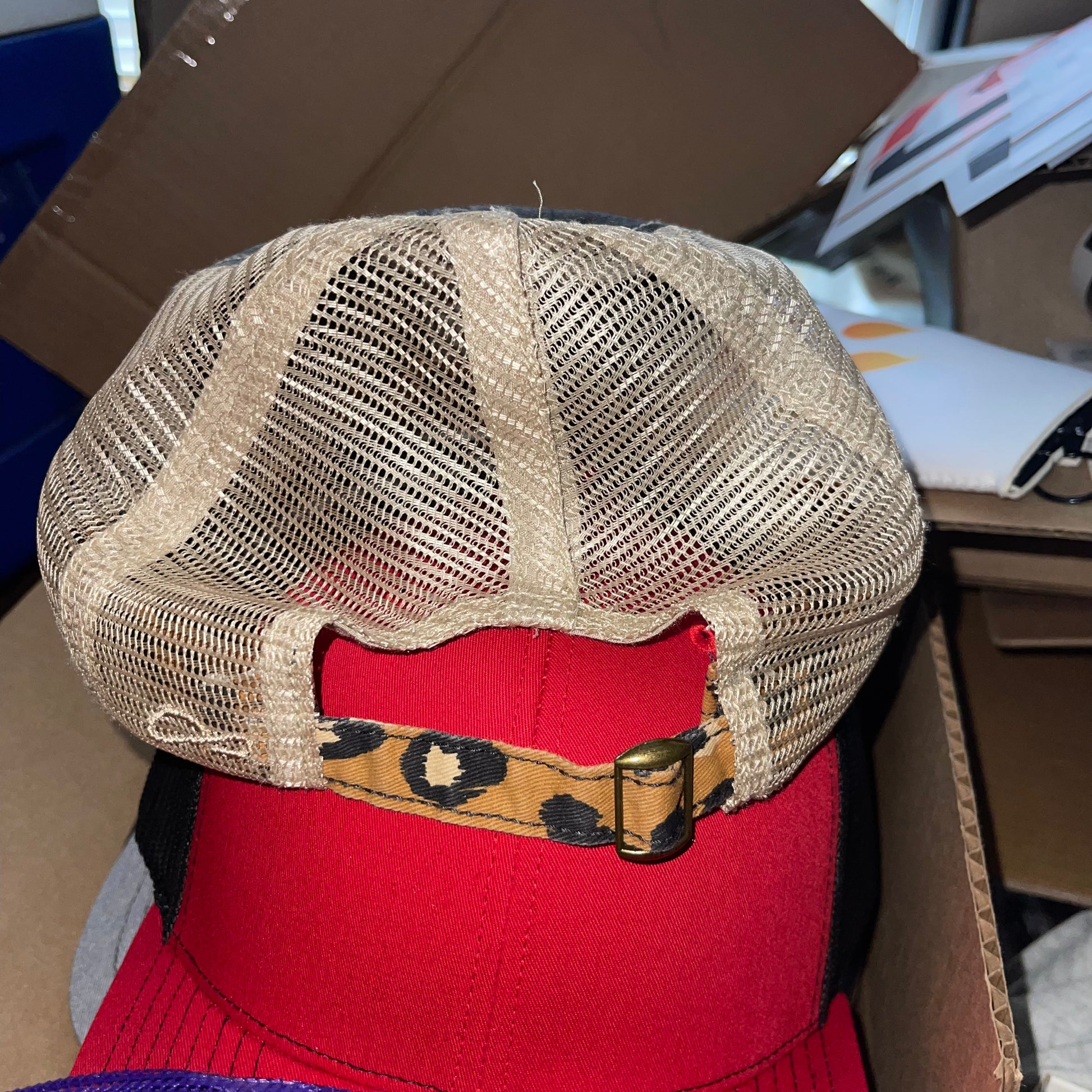 Leopard Mama Hat — Unstructured — Concealed ponytail opening — makeup resistant sweatband