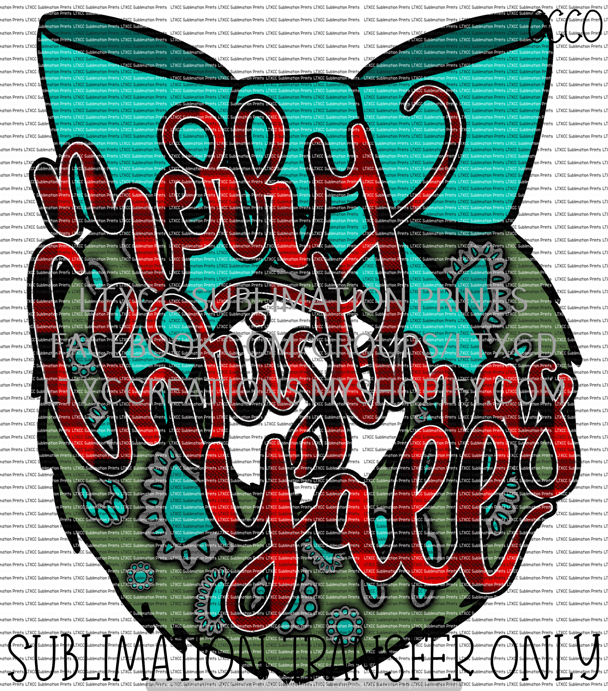Merry Christmas Y'all Turquoise Wreath - SUBLIMATION PRINT TRANSFER