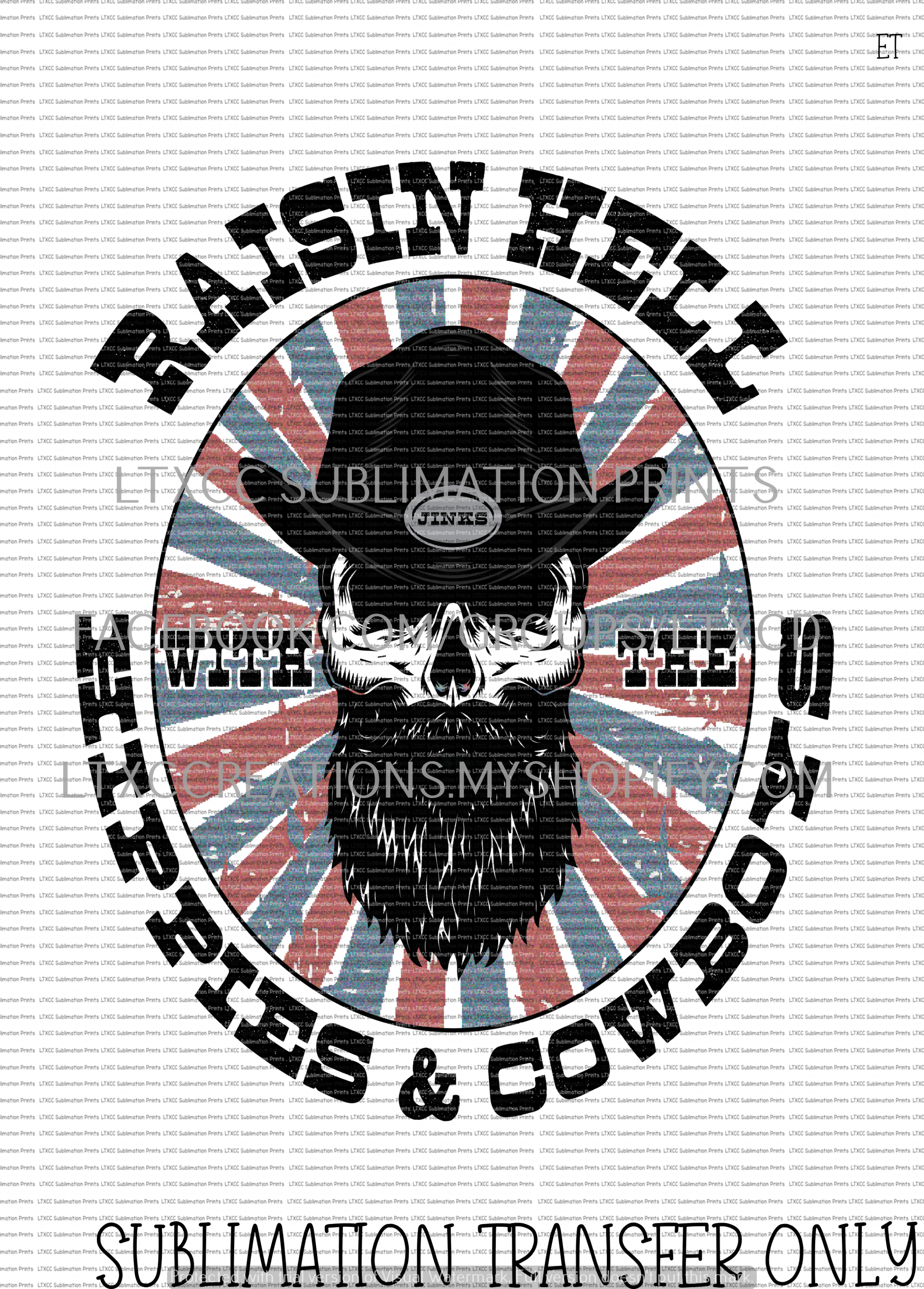 LONG VERSION - RAISIN' HELL WITH THE HIPPIES AND THE COWBOYS CODY JINKS - SUBLIMATION PRINT TRANSFER